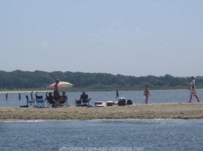 These pictures of Egg Island (above) and Sandy Neck (below) aren't technically photos of "Cape Cod beaches". They're photos of little islands of sand that appear and disappear with the falling and rising of the tide.