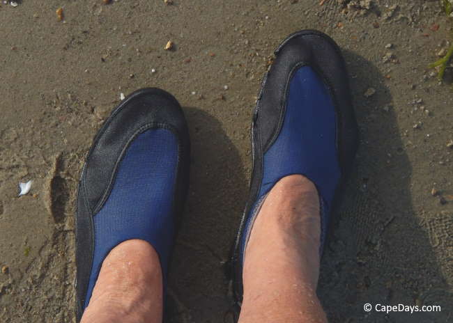 Water shoes will give your feet the best protection from sharp shells and pointy rocks. If you don't already have them, get a pair!