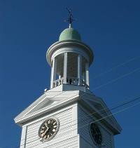 The Town Clock - (200 Main Street) When you hear bells ringing at odd times of day, that's the 1st Congregational Church's bell tower clock (known locally as the "Town Clock"). |