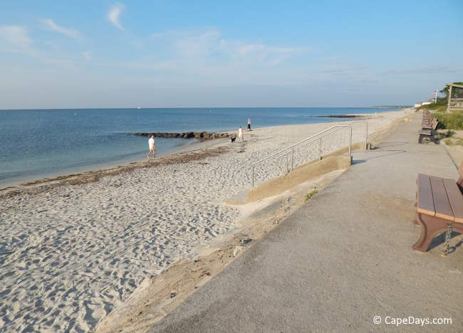 This is a great place to sit and watch the ferries, fishing boats and pleasure yachts cruising in and out of Hyannis Harbor. Children enjoy splashing in the water, playing on the swings, and climbing the small jungle-gym at this beach.