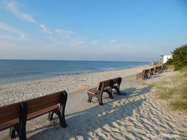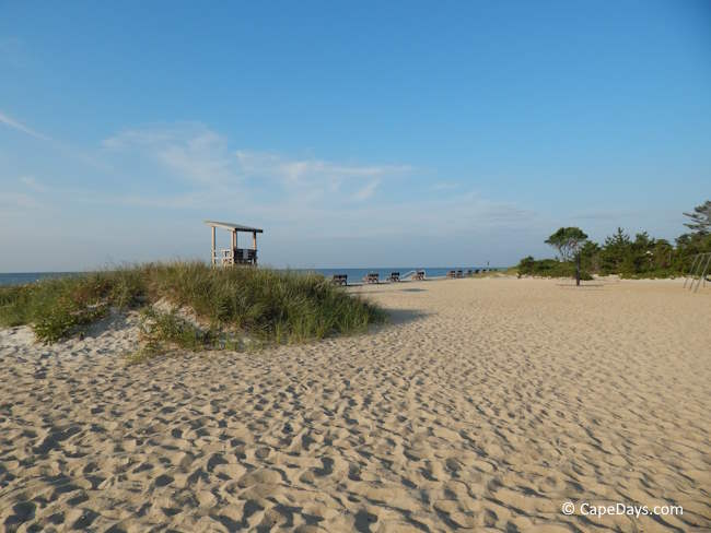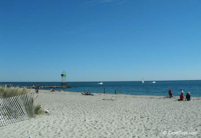 This beach has powder-soft, nearly white sand, calm surf and a pretty view of Nantucket Sound. Although the water is pleasantly warm in the summertime, the occasional "jellyfish alert" signs should be heeded.