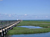 Bass Hole Boardwalk stretches nearly 900 feet out over the saltmarshes to Cape Cod Bay.